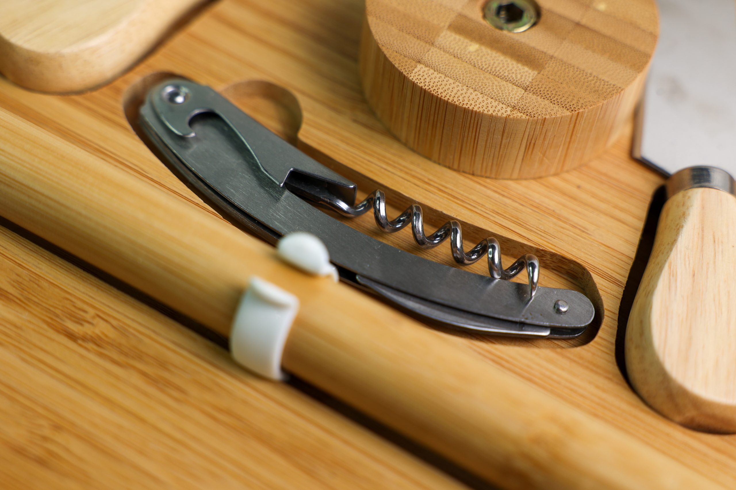 Bamboo Cheese Board & Knife Set with Wine Opener