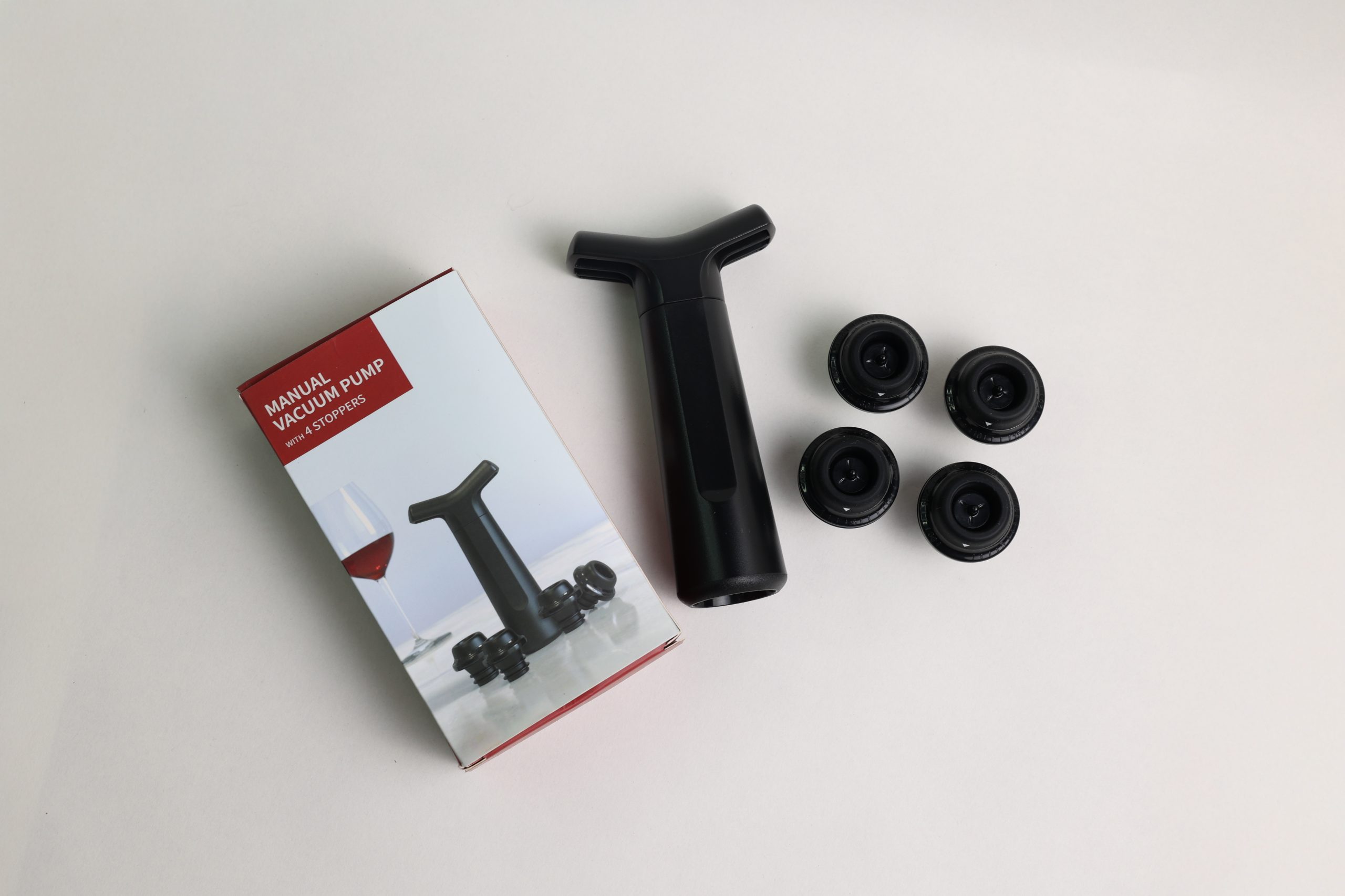 This set includes one manual vacuum pump and four reusable bottle stoppers, making it a practical and essential accessory for any wine lover.